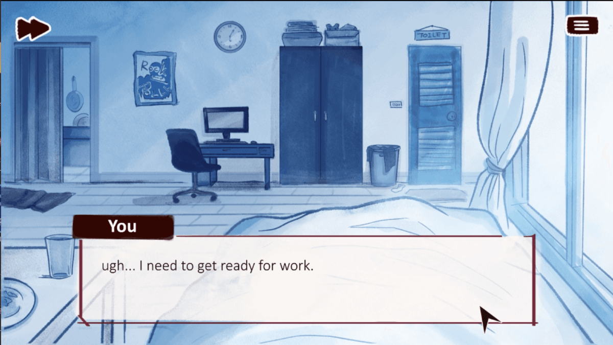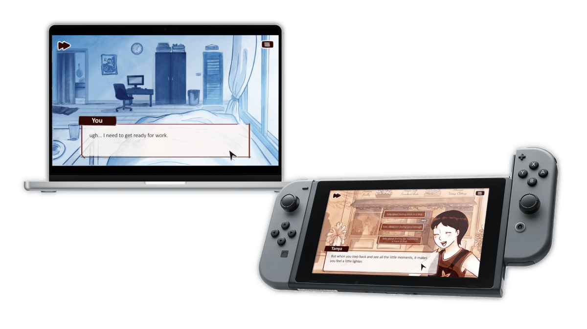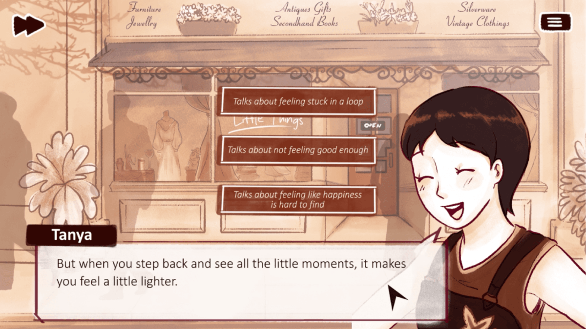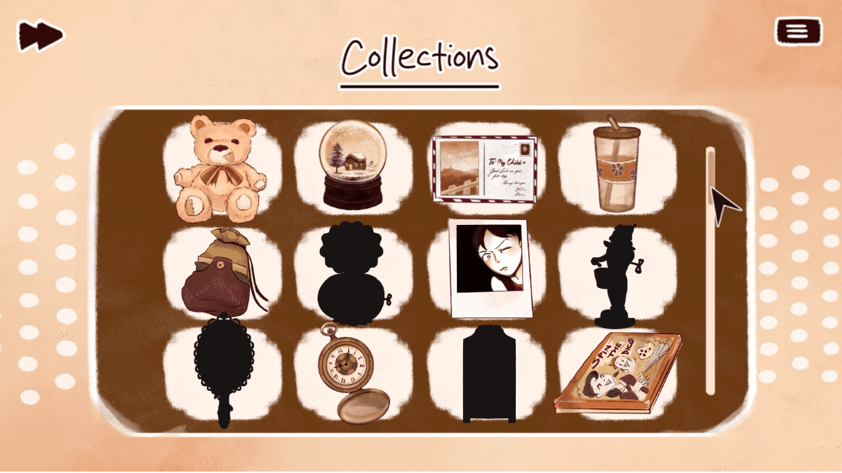 A reflective narrative game about rediscovering joy in everyday life. You play as an adult stuck in the grind of routine, until a message from Tanya, a childhood friend you’ve forgotten, pulls you into a quiet adventure. Reconnect at a vintage shop with a strange rule: donate three old belongings to receive a mysterious gift that represents something in you. Try different routes and collect all the collectibles you could find along the way!